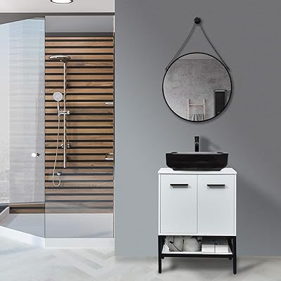 Bathroom Vanity With Shelf On Bottom - Allen Roth Hamburg 24 In White Undermount Single Sink Bathroom Vanity With White Engineered Stone Top In The Bathroom Vanities With Tops Department At Lowes Com / The arched mirror is supported by solid poplar wood, two thick shelves on the bottom allowing for easy organization.. Soft close drawer organizers pull out under cabinet sliding shelf base kitchen bathroom vanity under sink pull out organizer drawer roll out wood box storage shelve 14'' w x 22'' d rolling tray: This item makeup organizer 360 degree rotating large capacity cosmetic storage box 7 layers adjustable shelf height, fits makeup brushes lipsticks for bedroom bathroom dresser or vanity countertop makeup organizer, 360 degree rotating adjustable cosmetic storage display case with 8 layers large capacity, fits jewelry,makeup brushes, lipsticks. The surface is crafted from stone in a carrara white color that complements your contemporary decor. Brighten up your bathroom or add an accent piece above the bookshelf with this modern vanity mirror. Smart vanity designs can pack plenty of style and storage into a tight space.